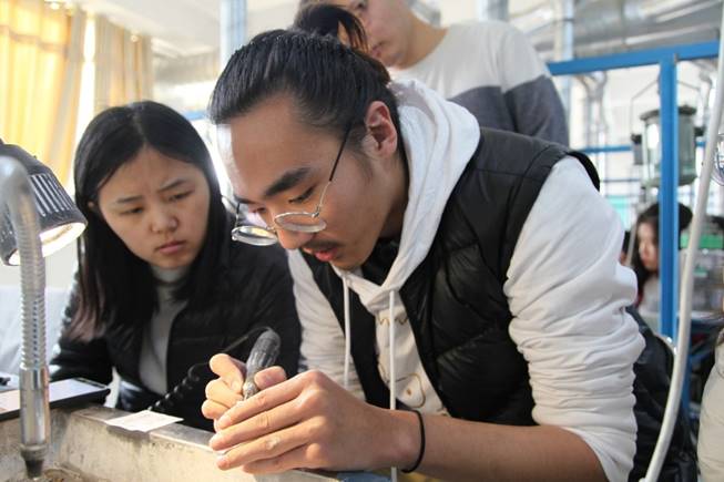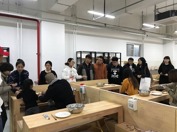 工艺美术系教师为校友讲解釉上彩手绘技巧