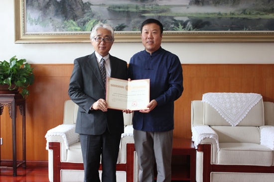 7月11日,我校敦聘国际著名漆艺大师、东京艺术大学副校长、国际交流部部长、美术学部教授三田村有纯先生担任客座教授仪式在学校举行。我校党委书记、校长刘林教授向三田村有纯教授颁发了聘书,三田村有纯教授欣然接受,并表示一定支持我校工艺美术系的发展。双方还就今后进一步深化两校之间的学科交流与合作进行了探讨。出席仪式的还有我校文化学院院长籍之伟、党总支书记陈琳,文化学院副院长、工艺美术系主任陈秋荣,工艺美术系党支部书记徐晓等。