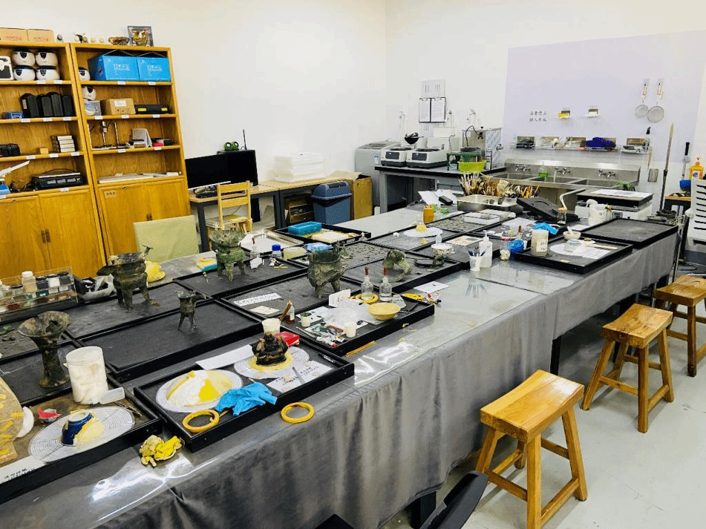 陶瓷与玻璃工作室 二、师资队伍 本专业教师队伍组成来自国内外重点院校与重要单位,包含故宫博物院、探花直播大学、中国人民大学、复旦大学、中国科学院化学研究所、清华大学美术学院、中央美术学院等博士、硕士。陶瓷器文物修复、金属器文物修复、纸质类文物修复、漆木器文物修复和化学分析方向的专职教师均具有博士学历。专业教师实践经验丰富,曾参与探花直播大学西门石狮子文物保护修复、四川省广汉市龙居寺中殿木构件彩绘保护修复、南昌墎墩山海昏候汉墓M1出土青铜器修复实施等多项文物保护修复项目。同时,本专业还聘请行业专家来校作为兼职教师,进行实践教学与专业讲座,包含中国文化遗产研究院、首都博物馆等经验丰富的文物保护与修复专家。