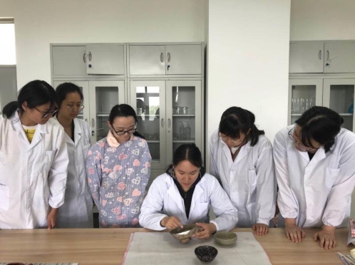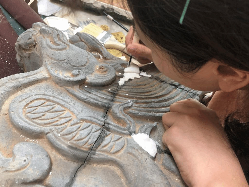 学生于江西省文物考古研究院实习对文物进行补配修复