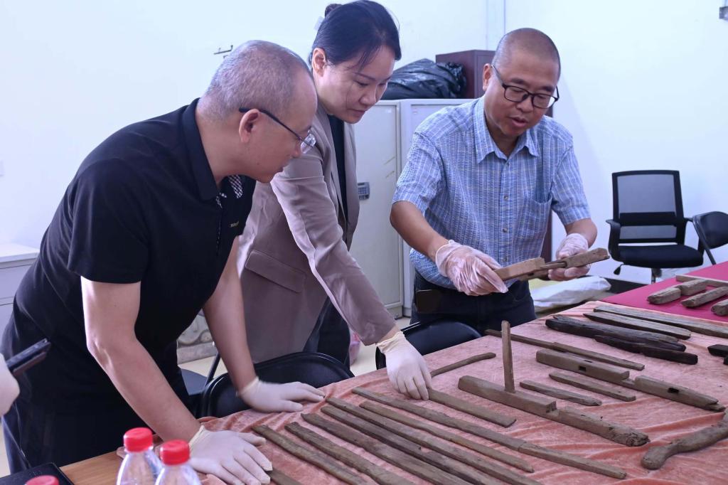 陈秋荣教授带领团队于探花直播考古研究院出土辽代木质家具修复现场
