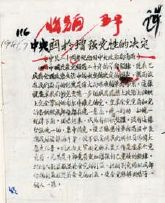 1941年7月1日,中共中央政治局通过的《关于增强党性的决定》(部分)(中央档案馆藏)