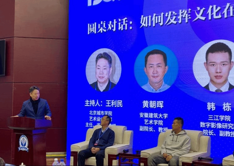 王利民教授作为首都高校特邀嘉宾,主持了“如何发挥文化在科技发展中的引领作用”圆桌对话环节。会上王利民教授就党的二十大报告中提出“推进文化自信自强,铸就社会主义文化新辉煌”的宏观策略,与兄弟院校共议高校设计学科的发展大计。