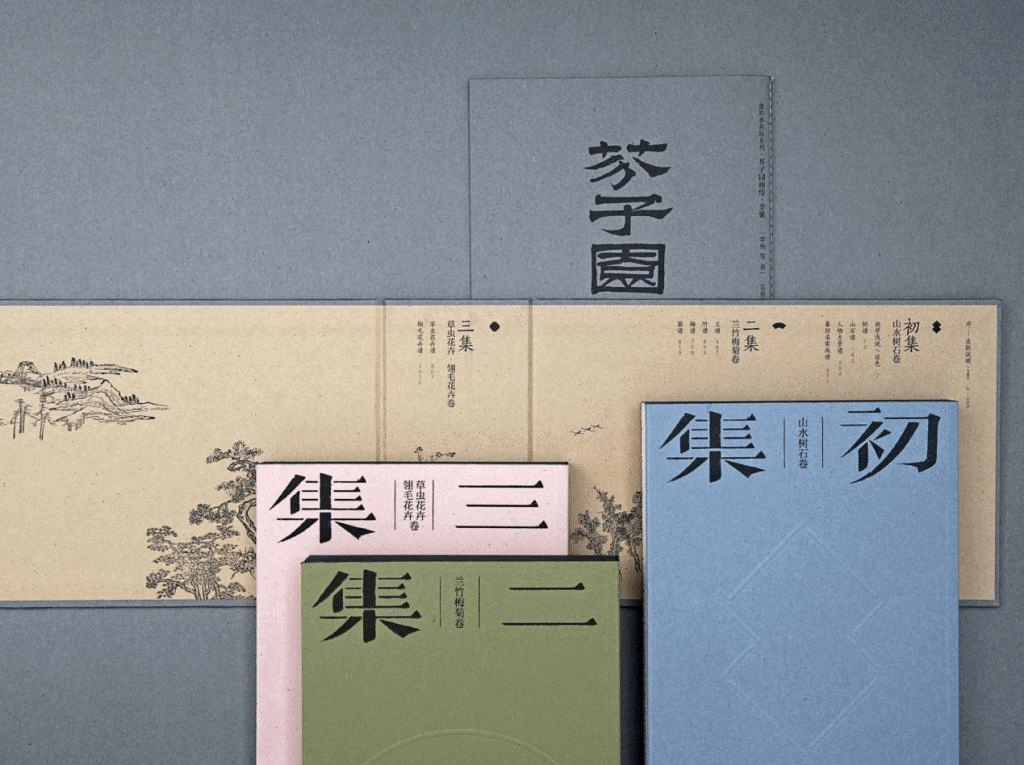 其中《芥子园画传·全集》是老书新作,为田老师近两年的代表作品,这是一套经典的明清绘画秘笈,是初学者学画的工具书。在介绍这本书之前,他带了一本市面上旧版芥子园画集,通过对比我们可以看到设计师的巧妙构思。田老师强调“设计应该有当代的审美性与现代的元素”,我们可以很明显的看到,与旧版不同的是,新封面使用了大量的留白手法,去装饰化,简洁直观的呈现了整本书的设计。全集分为初集、二集、三集,内容包括“山水树石”“兰竹梅菊〞虫草花卉〞翎毛花卉“四个部分,在三本书的封面采用压印的工艺复刻了三个符号化元素:方胜形、扇面形、花卉形,这是从“花窗漏影、借景成画"的视角去解读绘画从而提炼的元素。凭借精美的装帧设计、创意的设计理念,获得众多大奖——2022年度“最美的书”、纽约TDC奖、第34届香港印制大奖银奖、第十届全国书籍设计艺术展奖项。他认为没有一项设计工作能够脱离书籍自身的文本以及框架的束缚,强调了书籍的内文版式要与外在形态达到和谐统一。