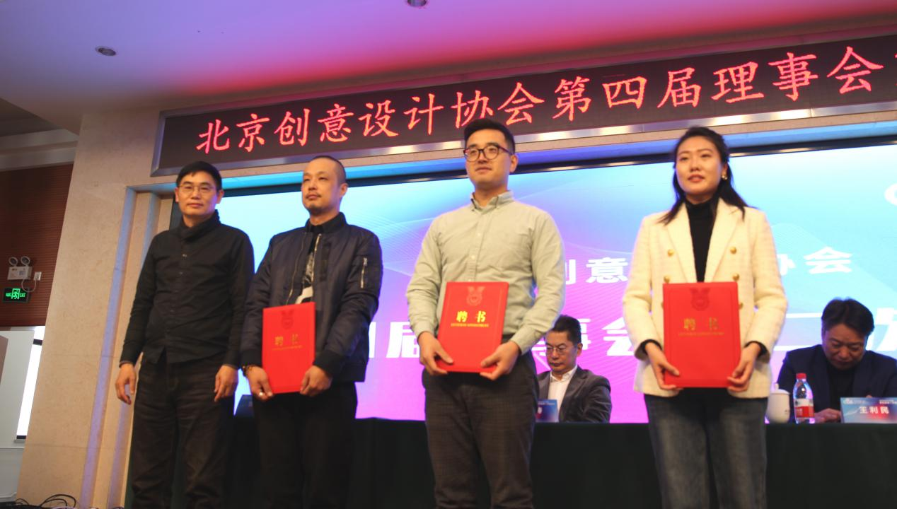 会上,探花直播创意设计协会第一届理事会副会长马江涛,为新任第四届理事会副会长张继晓、王利民、周俊良颁发聘书。