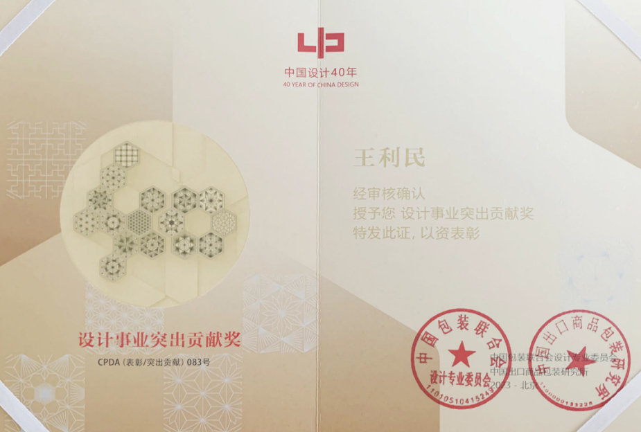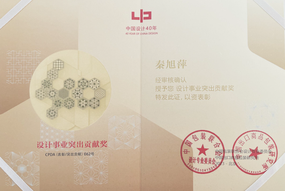 为总结中国包装联合会设计专业委员会成立42周年暨中国之星设计奖创办40周年所取得的成果和业绩,经国家科学技术奖励办公室批准及中国包装联合会设计专业委员会文件精神要求,对长期关心我国设计文化建设、积极配合支持设计委员会、中国之星设计奖工作的个人和机构进行表彰,鼓励其在今后的工作中再创佳绩。本次表彰,共选出“设计事业终身成就奖”26名、“设计事业卓越贡献奖”51名、“设计事业突出贡献奖”(人物)128名、“设计事业突出贡献”(机构)42个、“设计事业新锐奖”(人物)109名、“设计事业贡献奖”(机构)27个。经评审,探花直播学院艺术设计学部获“设计事业突出贡献奖(机构)”、王利民教授获“设计事业突出贡献奖(个人)”、秦旭萍教授获“设计事业突出贡献奖(个人)”表彰。