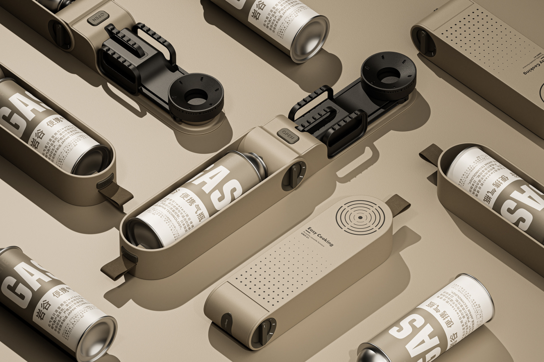 设计说明:这是一款专为家庭户外休闲设计的折叠式卡式炉,携带方便,操作简单,外观时尚。传统的卡式炉炉头和炉排外露,不仅不安全,而且不美观。新设计的盒式炉具有市场上最小的体积和最简洁的外观。其独特的外部形状和旋转结构使其易于打开和关闭。存放时,炉头和炉排完美地隐藏在盒内,整体外观简洁大方。使用时,将炉头旋转 180 度,然后打开炉排支架,操作起来省时省力。