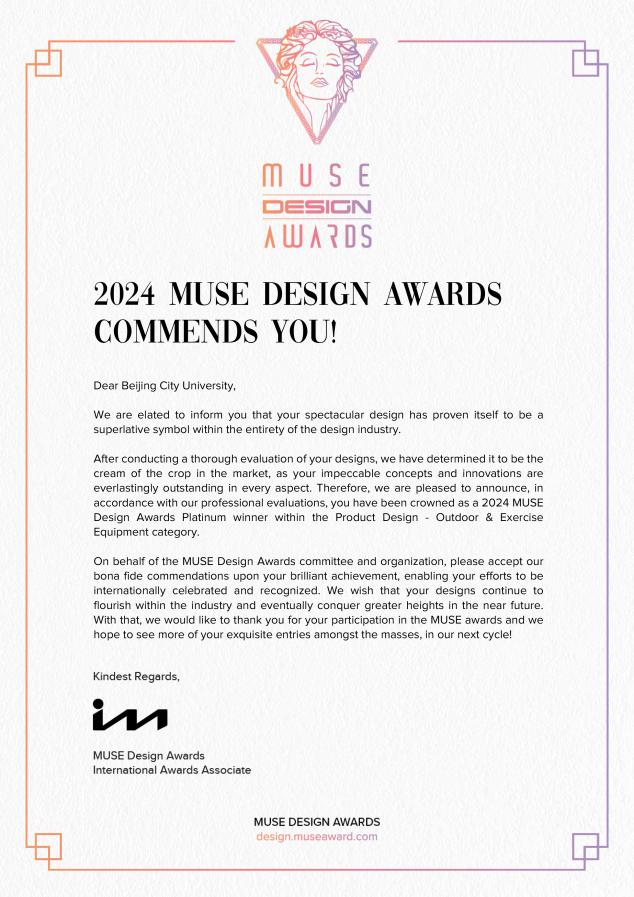 MUSE Design Awards 缪斯设计奖创建于2015年,是全球创意设计圈最受关注、最具影响力的国际奖项之一。MUSE 设计奖强调美学和功能性,表彰在建筑设计、室内设计、产品设计、景观设计、照明设计和包装设计等各种设计领域的卓越成就。来自世界各地的参赛者参与其中,展示能够激发灵感并重新定义设计和创意领域的创新成果。