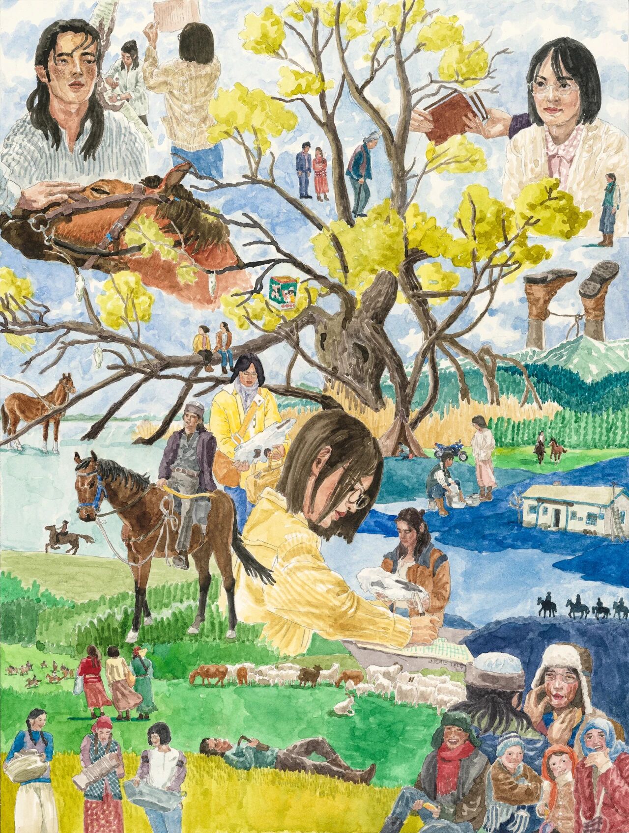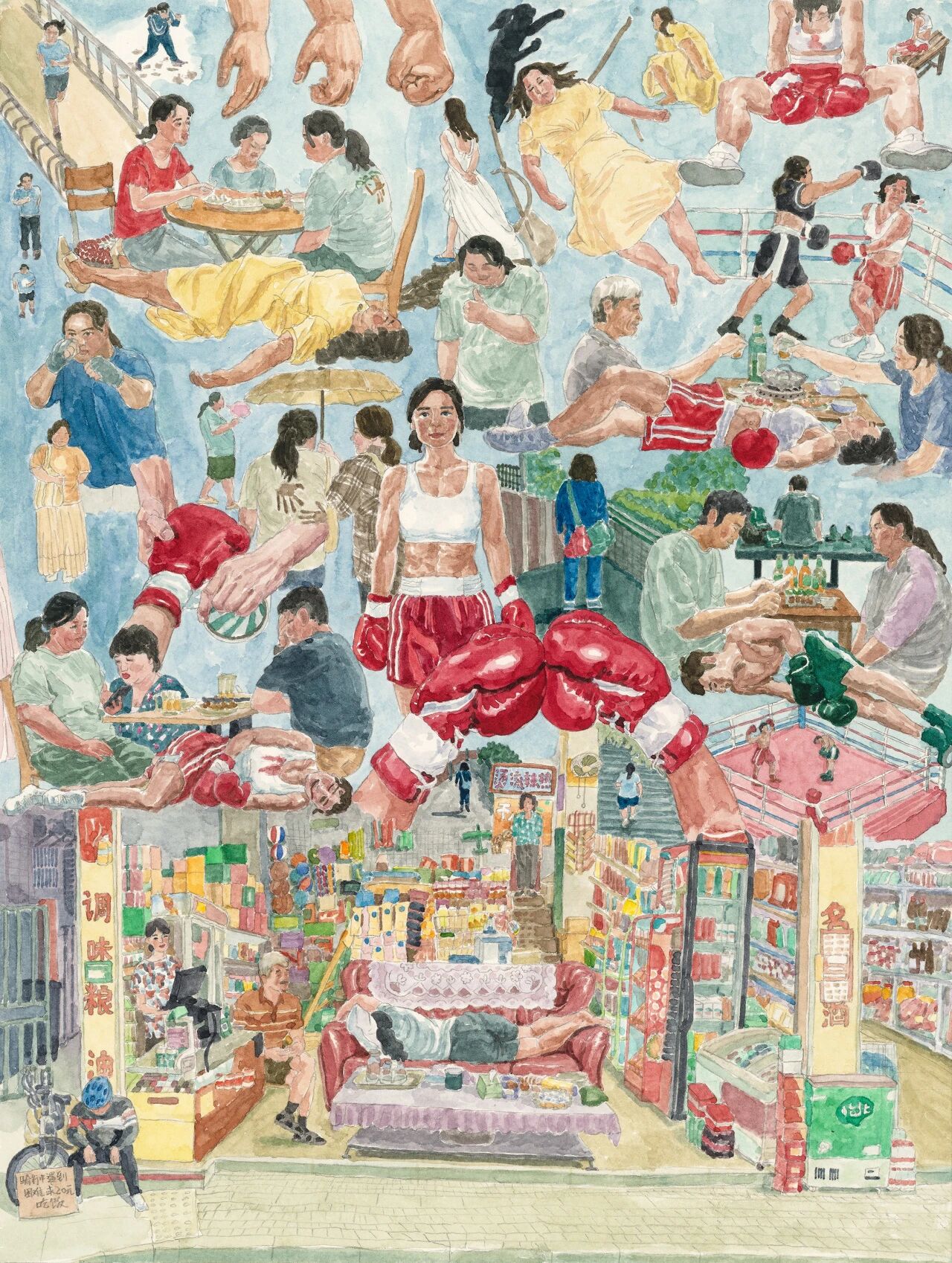 作品简介:本系列插图绘画作品选取三部影视剧中撼动内心的每一个瞬间,重新组合并以绘画叙事,试图超越剧情本身并捕捉一种共通的“生命状态”。《霸王别姬》是“不疯魔不成活”的痴执,人戏不分;《热辣滚烫》是战胜旧我后的燃烧,虽败犹荣;《我的阿勒泰》是于广袤自然中寻得的悠远,澄澈宁静。三者并置,愿观者能品咂这人间百味中的炽热与纯粹。