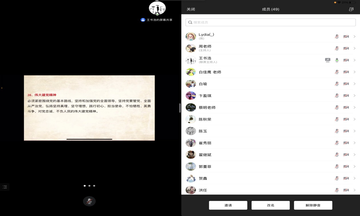 为加强支部党员对二十大中党章新修改内容的理解,丰富关于党章的知识储备。2022年11月9日,艺术工美党支部采用线上线下结合的形式开展“学习新党章,担当新作为”学习活动。本次活动由艺术工美党支部组织委员王书浩主持,全体党员参加。