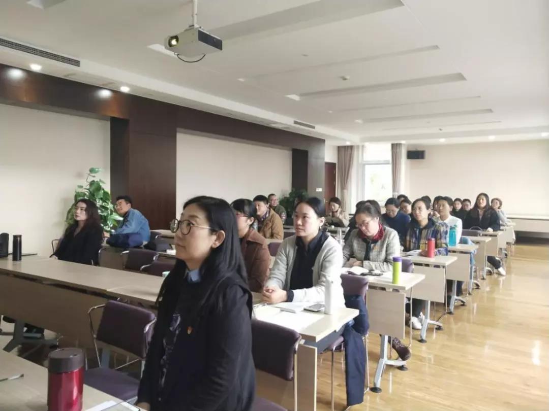 ▲ 全体党员教师观看“不忘初心、牢记使命”主题教育先进典型事迹报告会