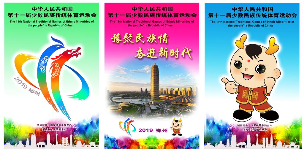 2019年设计中华人民共和国第十一届少数民族传统体育运动会徽、吉祥物与宣传画。