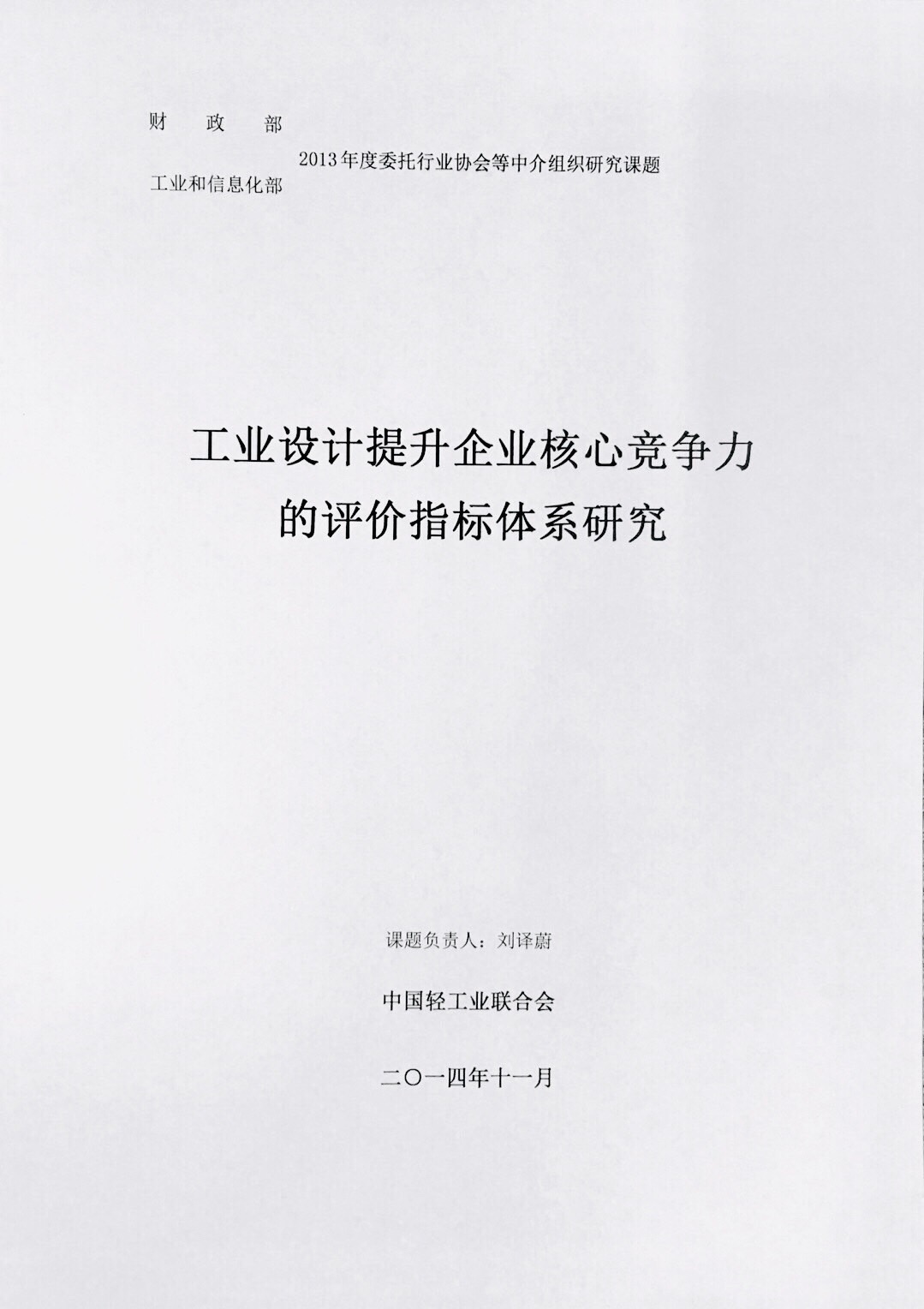 工信部课题《工业设计提升企业核心竞争力的评价指标体系研究》