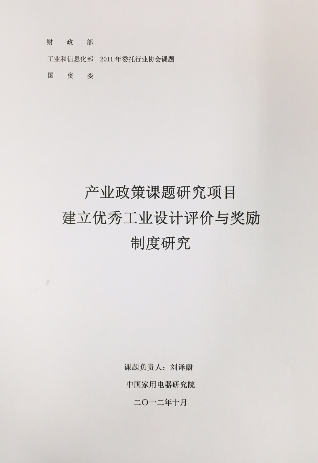工信部课题《建立优秀工业设计评价与奖励制度研究》