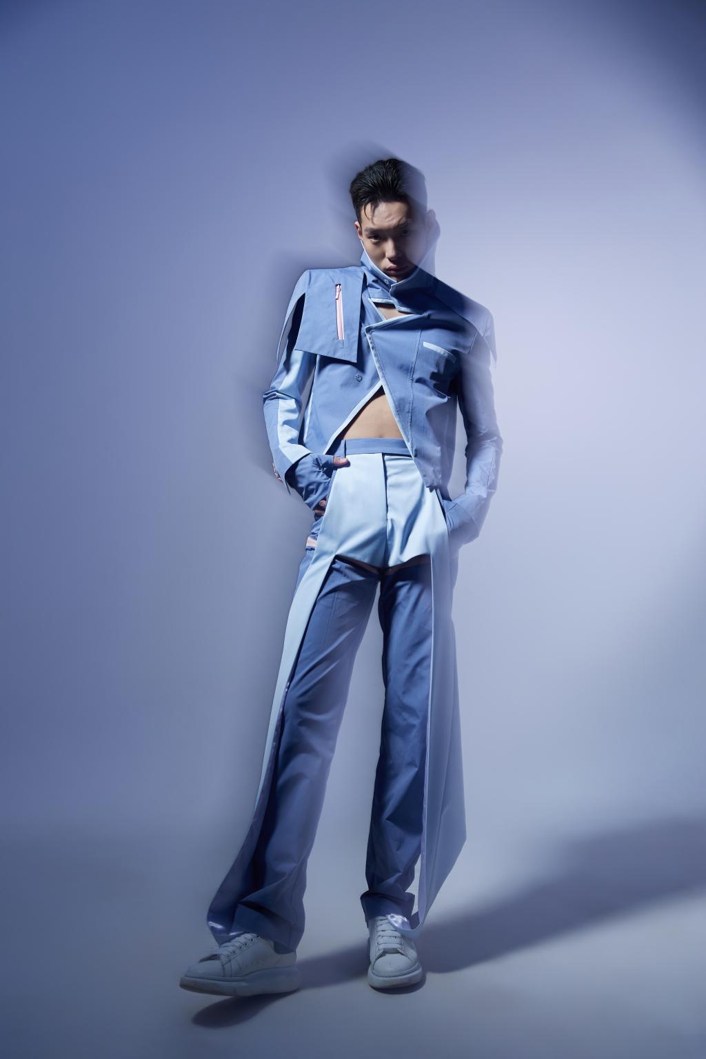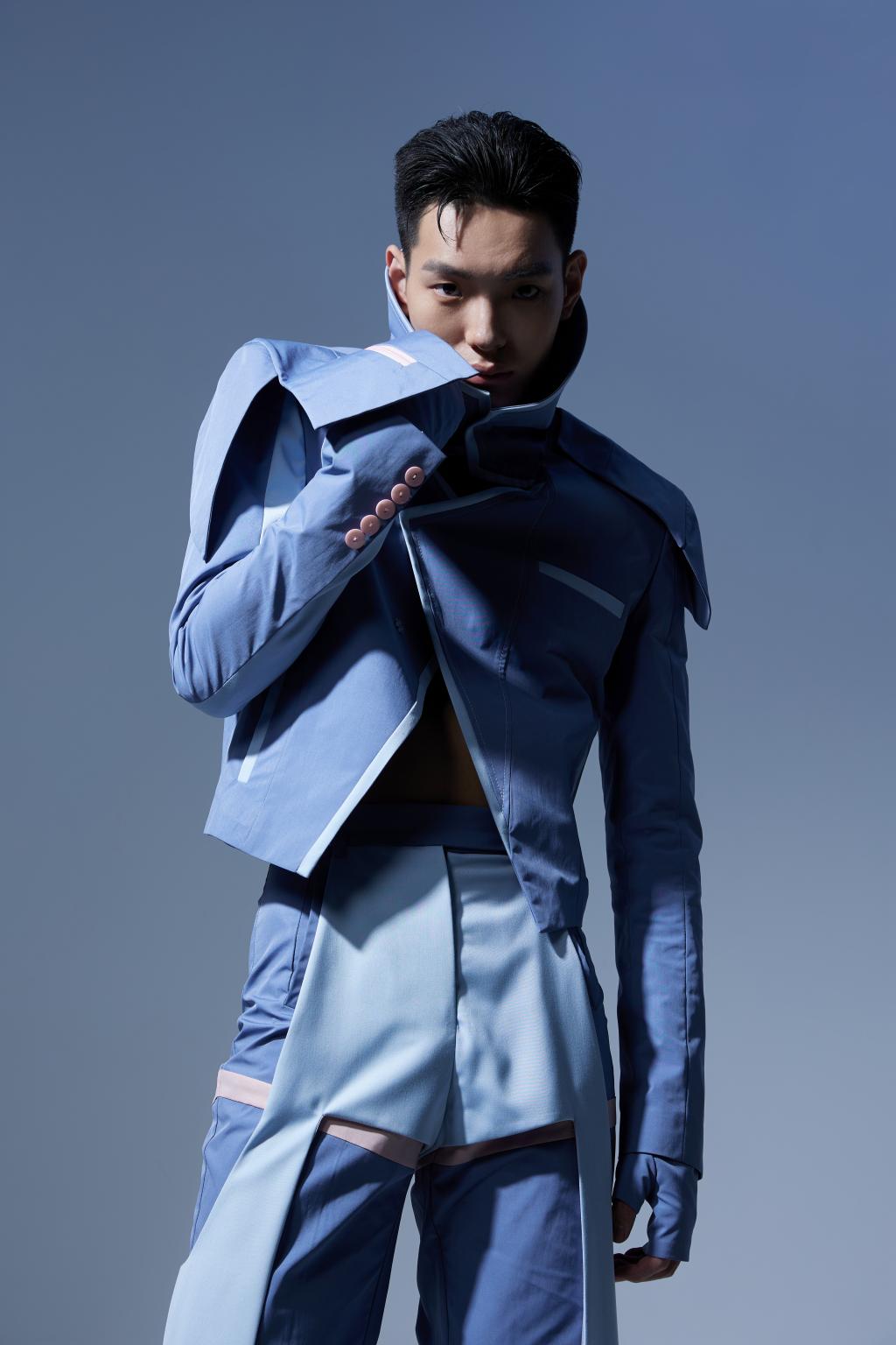 西服是社交场合的重要服装品类,穿着西服能更好地凸显个人的品位和气质;户外夹克作为现代服装的重要品类之一,在现今时装行业中日益占据主导地位。本次设计实践以男士西服的版型为基础,将户外夹克的耐穿、抗皱、抗寒与舒适等优点与传统男士西服相融合进行创新设计。