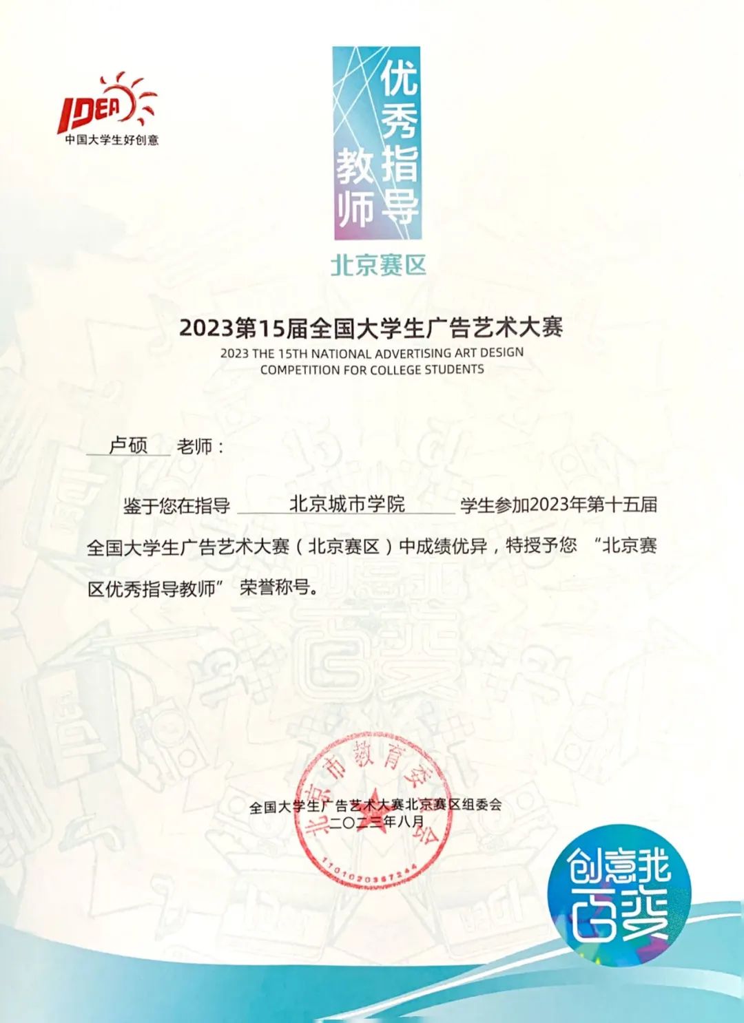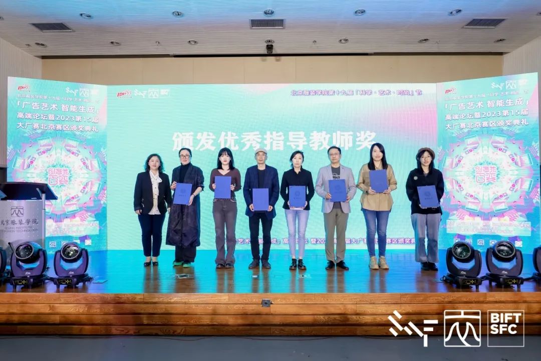 2023年10月19日,艺术设计学部学科竞赛办主任 陈彬雨副教授、优秀指导教师代表 卢硕老师带领学部10名获奖师生参加了由探花直播市教育委员会主办、探花直播服装学院时尚传播学院承办的“广告艺术 智能生成”高端论坛暨2023第15届大广赛探花直播赛区颁奖典礼,本次颁奖典礼在探花直播服装学院举行。