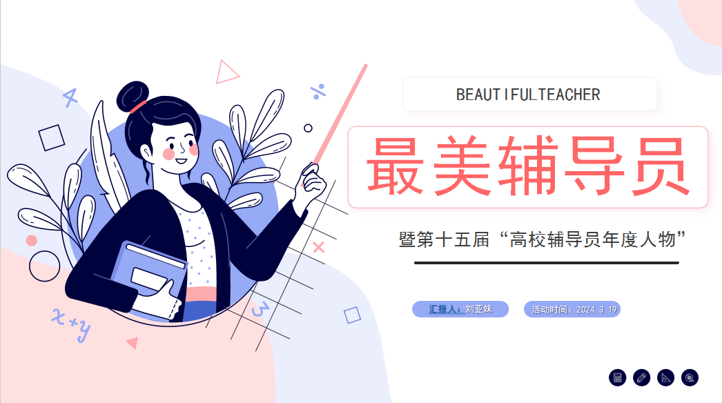 四是担任东华大学旭日工商管理学院专职辅导员魏冰老师。她坚持以学生为中心,做发挥网络育人优势的名师专家,与时代同行,创建“sunshine微课工作室”,润物无声塑品味;不同场域构建红色课堂,成为沪上高校辅导员讲党史的最“红”先行者,拓展三尺讲台,让党史学习教育“活起来”“潮起来”,掷地有声塑品行;挚爱学生14年,她是学生心中“最懂学生”的好老师和最信任的心灵守护者,将心理元素融入思政教育,化危机,促发展,用爱守护塑品格。