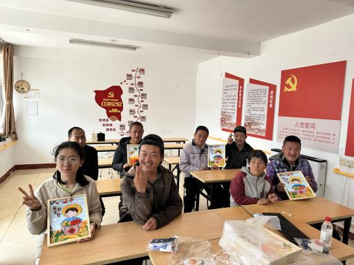 由支部选派的学生志愿者以党建为主题教残疾人士绘画。活动现场,志愿者们耐心引导,一步一步示范,从勾勒轮廓到细致上色,每一个步骤都认真讲解。此次志愿活动,是一次艺术的交流,更是一场心灵的交融。它不仅为残疾人士打开了一扇通往艺术殿堂的窗户,让他们拥有了一次独特而难忘的艺术体验,也让志愿者们在付出中收获了满满的温暖与感动。