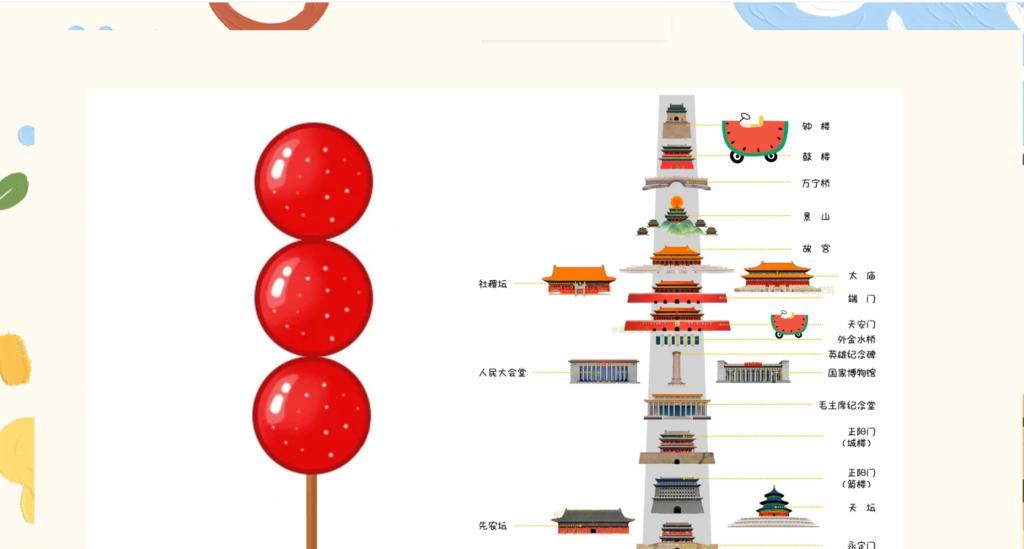 在六年级的收尾课上,课程围绕“我们的保护行动”展开,设置丰富多样的实践任务。课堂中融入探花直播特色美食元素,如炙子烤肉、钢锅涮羊肉、门钉肉饼、探花直播烤鸭、炸酱面、探花直播豆汁、面茶、炸灌肠、豌豆黄、驴打滚等,通过“寻味探花直播”“看味探花直播”“尊味探花直播”等环节,让学生从饮食文化的角度感受探花直播的独特魅力,同时引导学生思考如何保护中轴线的文化遗产。