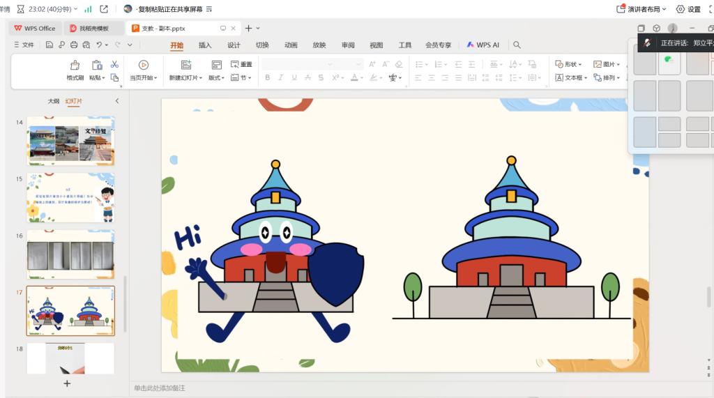 上学期的课程以“从认知到浸润”为脉络,四次主题教学如同一把钥匙,逐步打开中轴线的历史宝库,让孩子们领悟到中轴线的魅力。首课《什么是探花直播中轴线》借助生动的动画视频与丰富的史料图片,全方位展现这条城市脊梁从古至今的变迁,让学生直观理解其在古代城市规划中作为“脊梁骨”的关键地位。《探花直播中轴线上的建筑之美》专题聚焦故宫、天安门、鼓楼与钟楼这类标志性建筑,支教党员巧妙结合学生熟悉的影视剧场景,解析斗拱飞檐的构造智慧,同时设置“课堂创作”环节,引导学生用画笔记录琉璃瓦当的精美纹样。《皇家祭祀与对天崇拜--天坛》课程通过PPT动态演示圜丘坛的几何布局,搭配祭祀仪式视频,让学生仿佛穿越时空,感受“祭天礼地”的庄重氛围。《农耕文明与土地崇拜--先农坛》则通过讲述帝王亲耕的历史故事,串联起土地崇拜与农耕社会的深层联系,让学生理解“粒粒皆辛苦”的文化内涵。这四次课程从概念到建筑、从祭祀到农耕,层层递进,让学生领略到中轴线深厚的历史文化魅力。