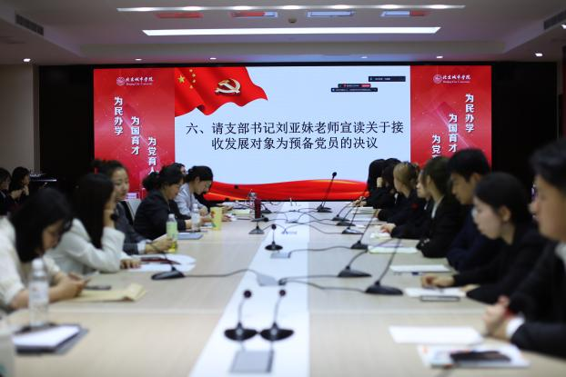 大会伊始,主持人宣布会议开始,全体起立齐唱国歌。随后,发展对象依次宣读《入党志愿书》向党组织汇报自己对党的认识、入党动机以及在思想、工作和学习等方面的情况。期间,各位入党介绍人分别发表了介绍人意见,由贾晓晓老师向大会报告12名发展对象现实表现的支部考察情况以及综合政治审查情况。
