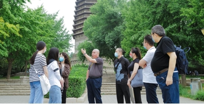 艺术工美党支部组织委员王书浩参与了此次会议,首先听取了街道领导、中国画院相关领导关于活动作品创作阶段的成果以及后续工作的安排。八里庄街道领导分别对画册的设计、展览的内容提出了相关建议。在八里庄街道文博专家的指导下,中国画院的青年画家们实地考察了玲珑塔、关帝庙、定慧寺,摩诃庵的现场,构思了相关作品,并进行了写生、采风。画家们认真学习、仔细观察、热烈讨论,了解了历史,对绘画的对象产生了完整的印象,对构图有了初步的设计。