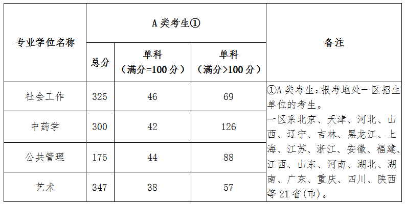 2020年探花直播硕士研究生招生考试考生进入复试的初试成绩基本要求(专业学位类)
