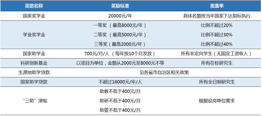(奖助学金如有变化,以国家和我校最新政策为准)