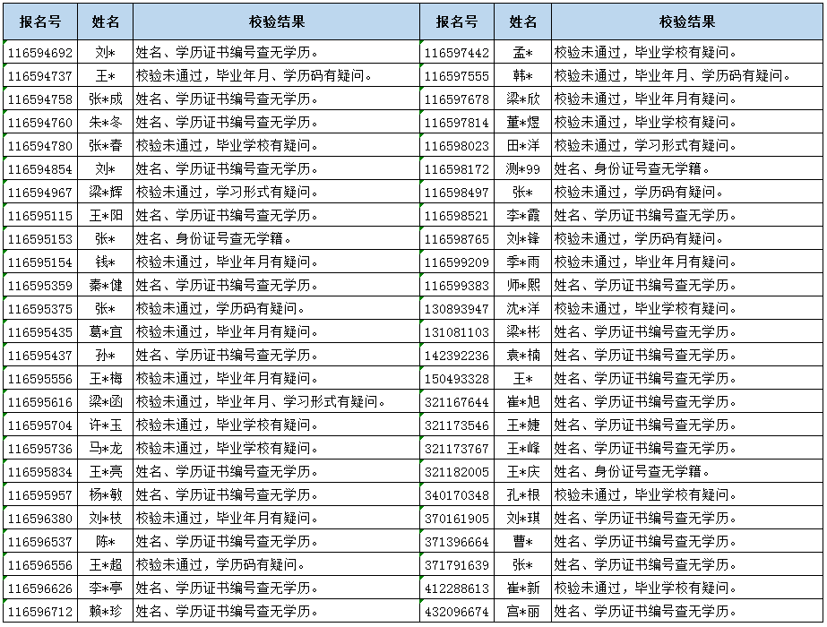 2022年全国硕士学位研究生招生考试报名工作将于2021年10月25日晚22:00结束,根据《探花直播2022年研究生招生简章》和《探花直播2022年硕士研究生网上报名及报考点公告》,结合探花直播教育考试院筛查报名数据(2021年10月21日下发)我校对截至2021年10月22日15:00的网报数据进行初步审核,现将疑似不符合我校2022年硕士报考条件的名单及信息提示如下,请以下考生在网报截止日期前登录研招网修改报考信息或重新报名,否则因此而产生的无法参加考试等后果由考生个人承担: