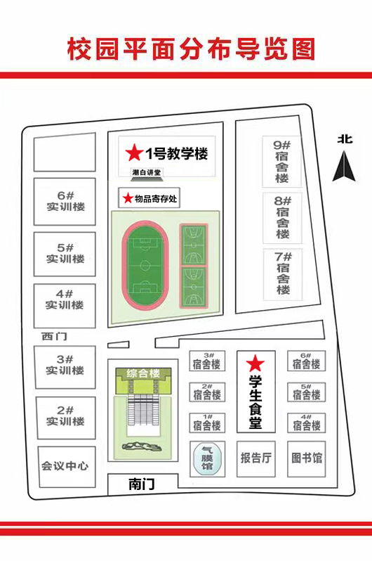 2. 本考点考场均设在1号教学楼,考生入校后不可随意走动,务必根据沿途指引路牌直达考场楼。考场楼距考点入口较远,请考生尽量提前到达考点。