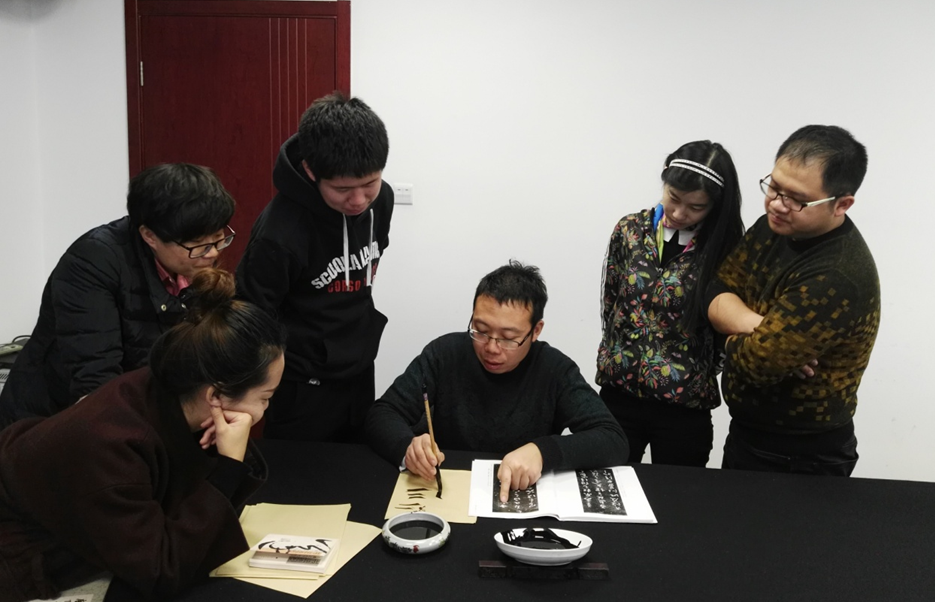 2017级研究生练习篆刻中 胡滨教授为学生做书法艺术赏析专题讲座