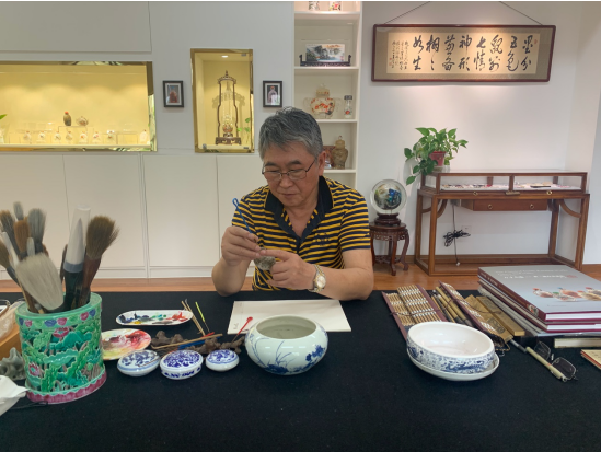 鼻烟壶内画工作室布置和鼻烟壶内画作品