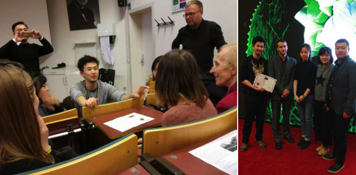 研究生在比利时鲁汶大学与师生进行专业交流 学生赴布鲁塞尔参加影展后领奖