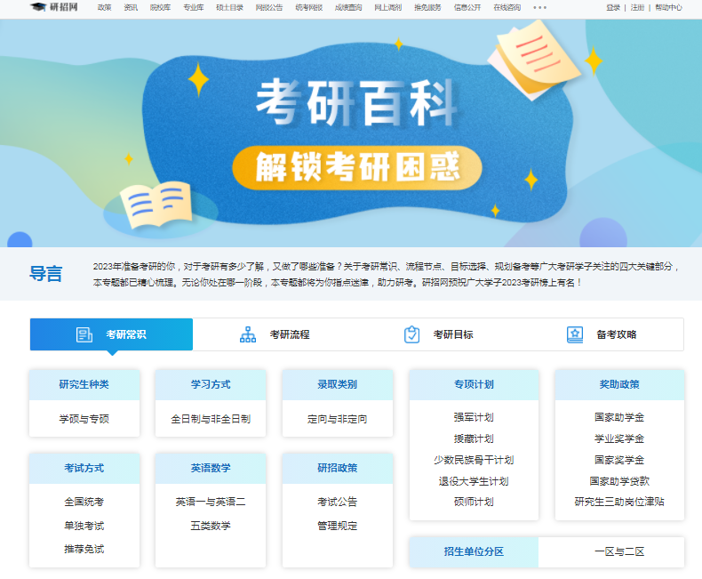 点击下图进入中国研究生招生信息网提供的“考研百科”栏目
