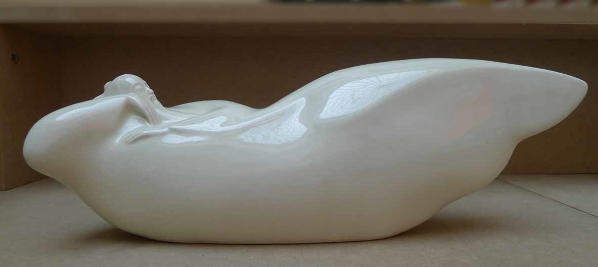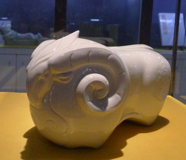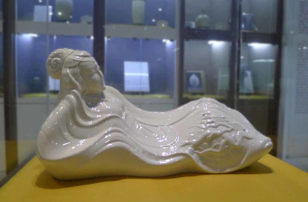 瓷塑作品《仕女枕》 瓷塑作品《庄周梦蝶》 瓷塑作品《领头羊》