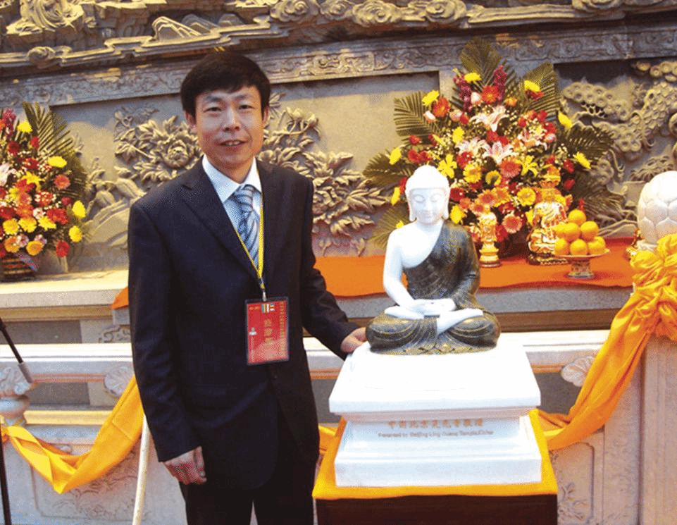 佛教类题材代表工程有:浙江新昌大佛寺石窟卧佛工程,卧佛长37米,是世界目前单体量最大的石窟卧佛,被佛教界权威和资深人士称为惊世之作,是“中国当代第一石窟卧佛”,是当代洞窟艺术的杰出典范;浙江奉化雪窦寺大佛雕塑工程;江西九江东林寺雕塑工程;江西宜春市禅都文化博览园雕塑工程等。
