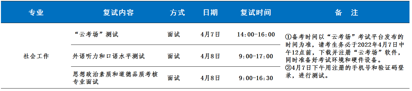 测试内容:思想政治素质和品德考核考察考生的政治态度、思想表现、道德品质、遵纪守法、诚实守信等方面。专业面试考察本专业的基本理论知识、运用社会工作的方法、技巧及理念解决实际问题的能力、对于专业领域内的热点、难点问题的分析能力。