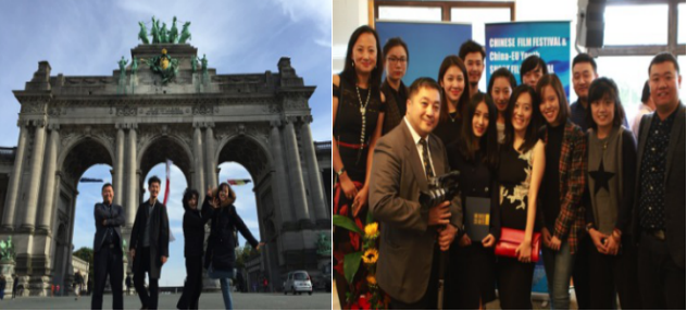 研究生在比利时布鲁塞尔、师生与电影节组委会秘书长在布鲁塞尔的新闻发布会现场