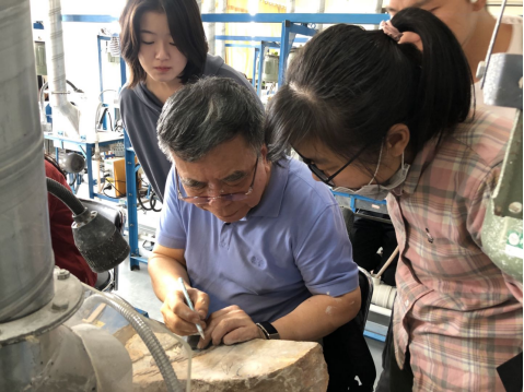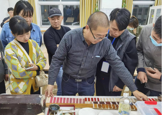 漆艺博士、陈秋荣教授、工艺美术大师为学生进行课程演示