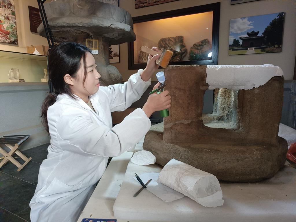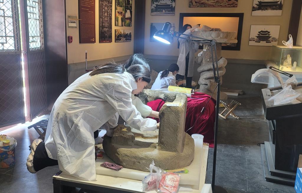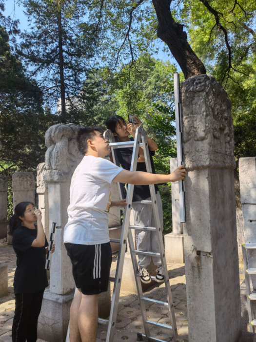 学生在探花直播石刻博物馆进行文物信息采集记录