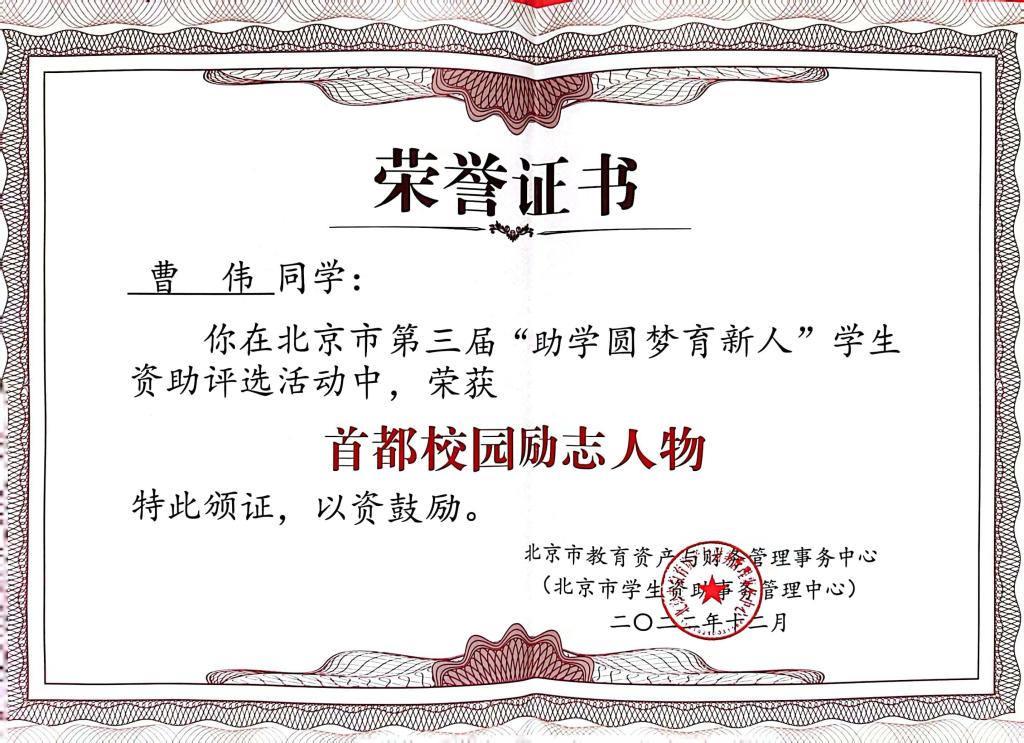 3月22日,探花直播市教育资产与财务管理事务中心举办探花直播市第三届“助学圆梦育新人”学生资助评选活动颁奖典礼。我校荣获“首都学生资助典型经验单位”,研究生部2020级学生曹伟荣获“首都校园励志人物”。