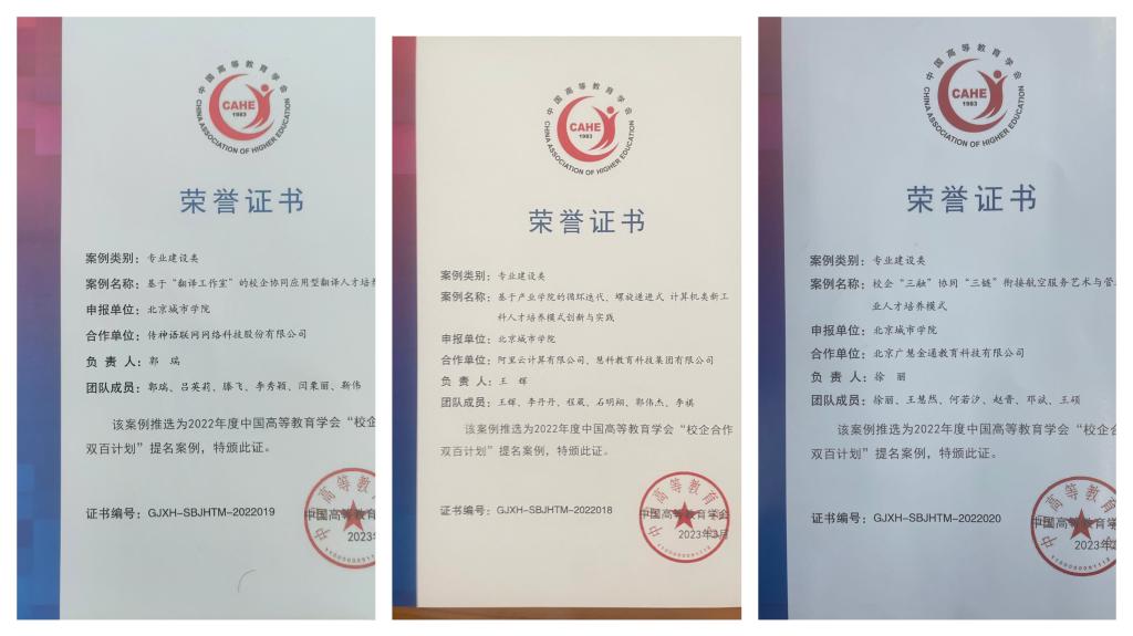 中国高等教育学会于2019年首次发起“双百计划”,旨在为高校和企业搭建合作桥梁,构建对话交流平台,形成校企双走访交流机制。 2022年“双百计划”自2022年9月启动,经资格审核、网络推选、学会研究,共推选产生359项提名典型案例。我校除信息学部该项案例之外,另有国际文化与传播学部郭瑞老师负责的“基于‘翻译工作室’的校企协同应用型翻译人才培养研究”、经济管理学部徐丽老师负责的“校企‘三融’协同‘三链’衔接航空服务艺术与管理专业人才培养模式”获提名典型案例。
