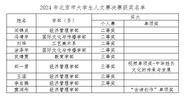 近日,探花直播市大学生人文知识竞赛决赛获奖名单公布,我校学生获奖10项,其中,二等奖4项,三等奖4项,视频单项奖1项,古诗创作单项奖1项。