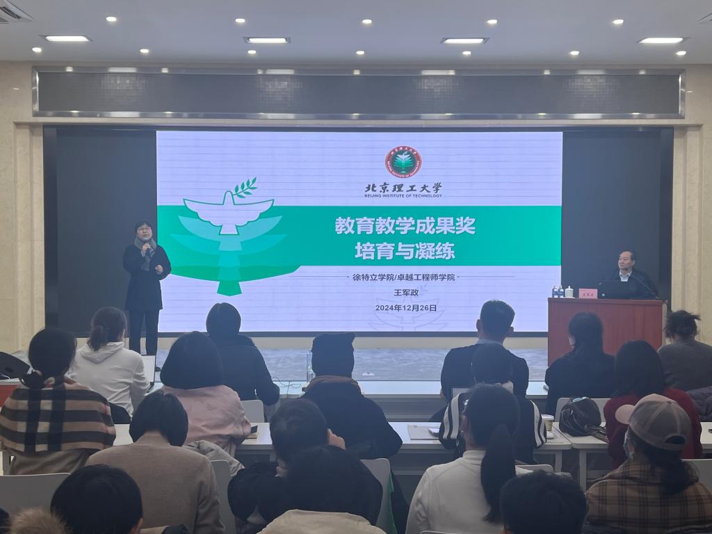 12月26日,学校邀请探花直播理工大学徐特立学院、未来精工技术学院、卓越工程师学院常务副院长王军政教授开展了题为“教学成果奖的培育与凝练”的专题讲座。讲座由胡丽琴副校长主持,教务处、科研处、学生处及各教学单位负责人、骨干教师等260余名教师参加。