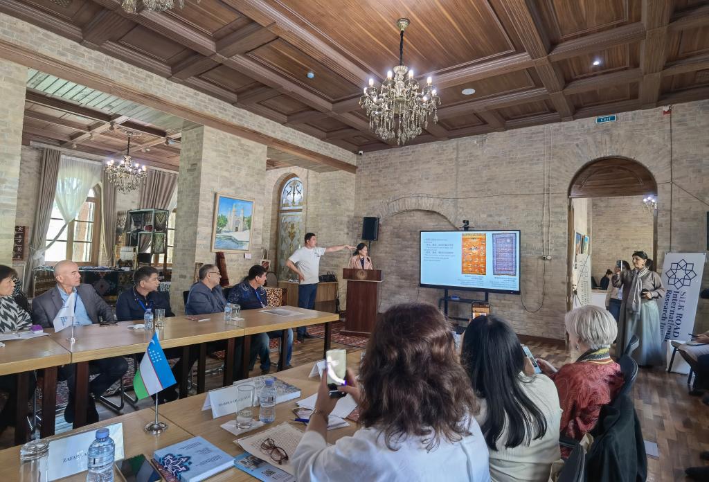 代表团首先前往历史名城撒马尔罕,拜访了该校中国籍副校长邹统钎教授,赠送了我校礼品,并就深化合作进行了深入交流。随后,代表团应邀参加了由该校丝绸之路国际研究院举办的地毯专题展览及相关学术活动。李冰教授代表我校文化遗产学部与丝绸之路国际研究院院长尤瑟波娃(Yusupova)教授正式签署了校际合作备忘录。交流期间,李冰教授作了题为“15至19世纪中国宫廷地毯纹饰与区域研究”的学术报告,获得了与会专家、学者的高度评价。