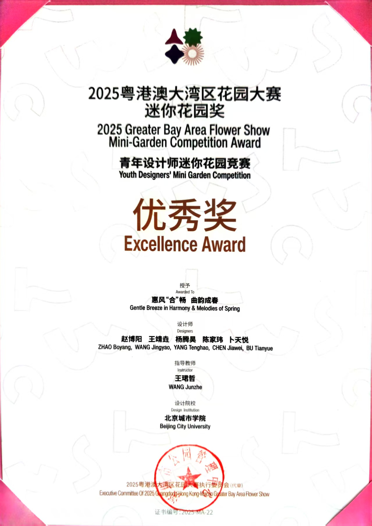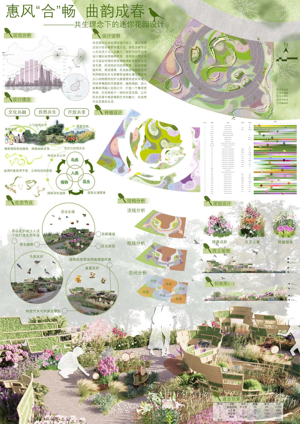 我校城市建设学部2021级风景园林专业赵博阳团队在王珺哲老师的指导下,凭借作品《惠风“合”畅 曲韵成春》荣获“青年设计师迷你花园优秀奖”。