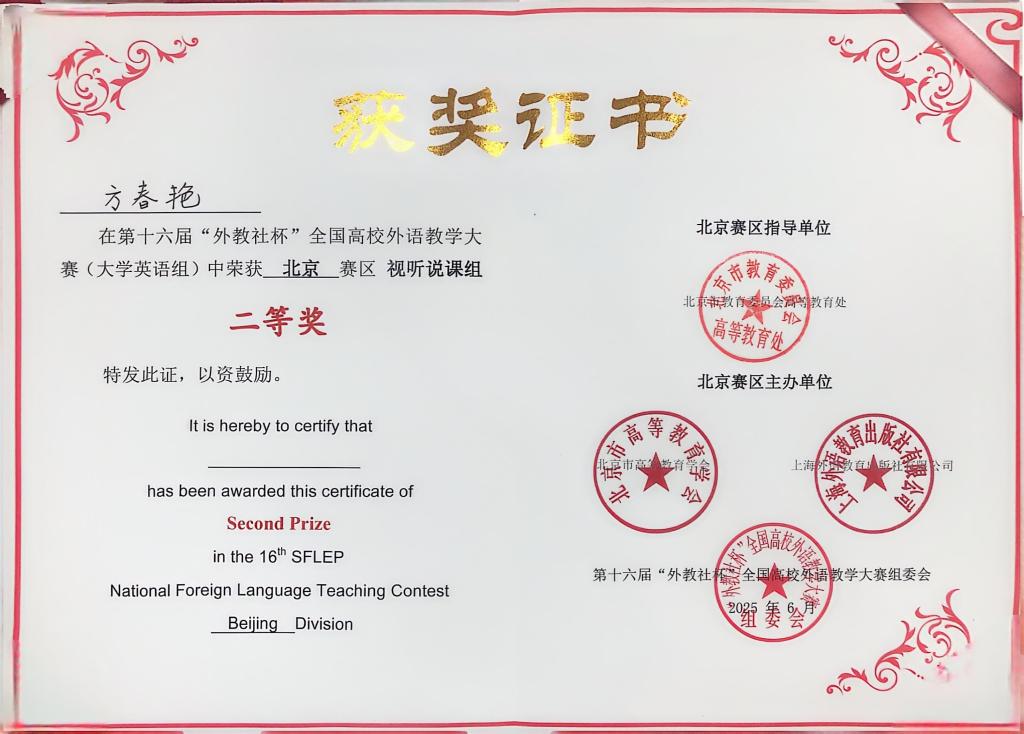 6月8日,第十六届“外教社杯”全国高校外语教学大赛(大学英语组)探花直播赛区决赛暨颁奖典礼在探花直播交通大学举行,我校公共英语教研室教师方春艳荣获视听说课组二等奖,郭塞雪荣获综合课组三等奖。