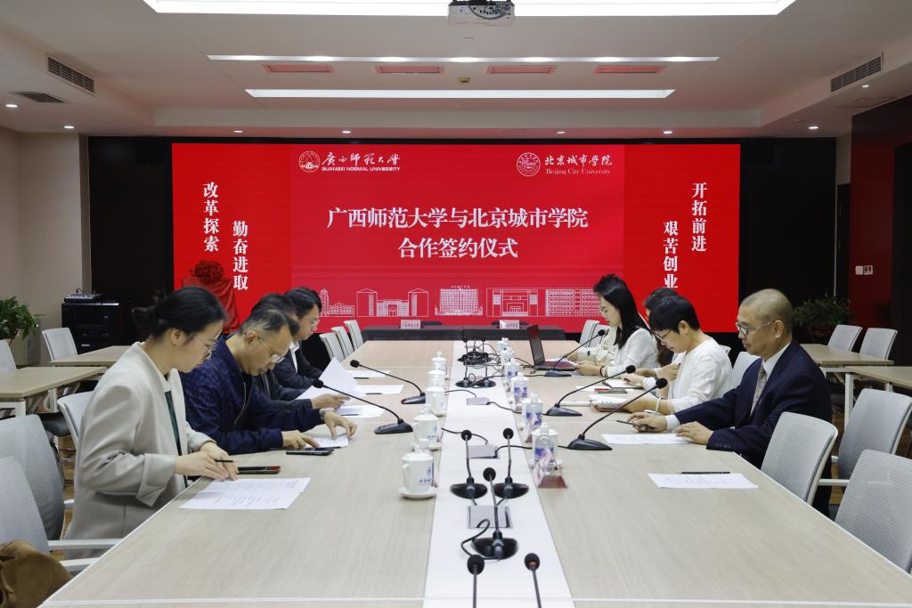 胡丽琴对广西师范大学代表团的到访表示欢迎,并介绍了我校的办学特色。她指出,我校立足首都、服务京津冀,办学机制灵活、产业对接紧密,形成了本土化、开放式、应用型的人才培养特色。她强调多学科协同,将科技赋能与传播提升融入文化遗产人才培养全链条,希望以此次签约为起点,双方将合作从研究生培养拓展至科研平台共建、社会服务协同与项目转化落地,实现更高质量的互补共赢。