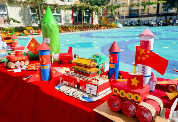 在本次国防主题玩教具的开发过程中,学前教育专业师生紧密围绕3-6岁幼儿的认知发展特点,从设计、选材到制作全过程细致打磨,最终形成了涵盖坦克、飞机、军舰等军事装备的系列作品。所有玩教具均采用环保安全的废旧材料制作,既降低了教学成本,又将海陆空装备认知与国防故事有机融入其中,真正实现了“玩中学、学中悟”的教育目标。