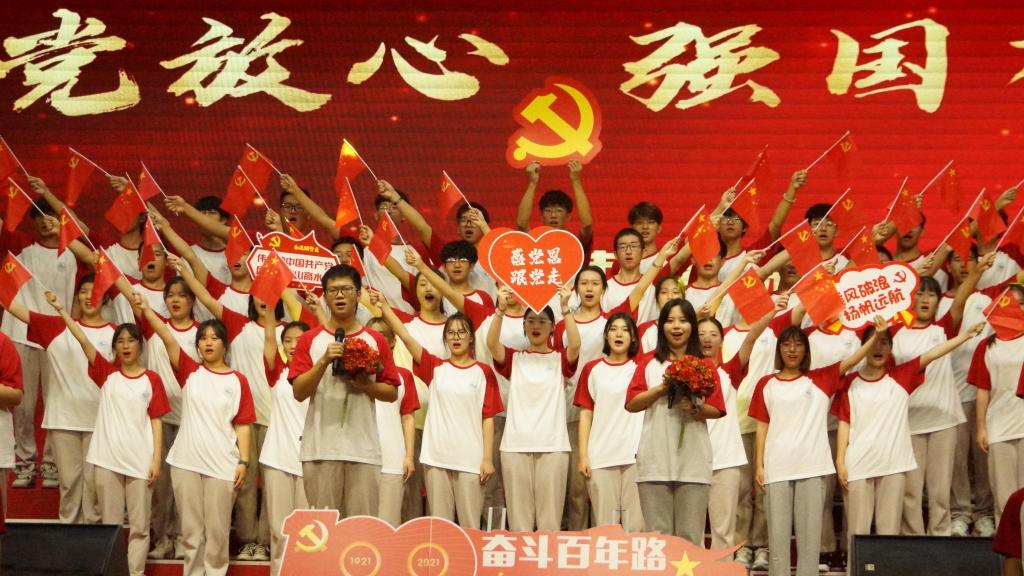 大会在全场师生高声合唱《没有共产党就没有新中国》的嘹亮歌声中落幕。